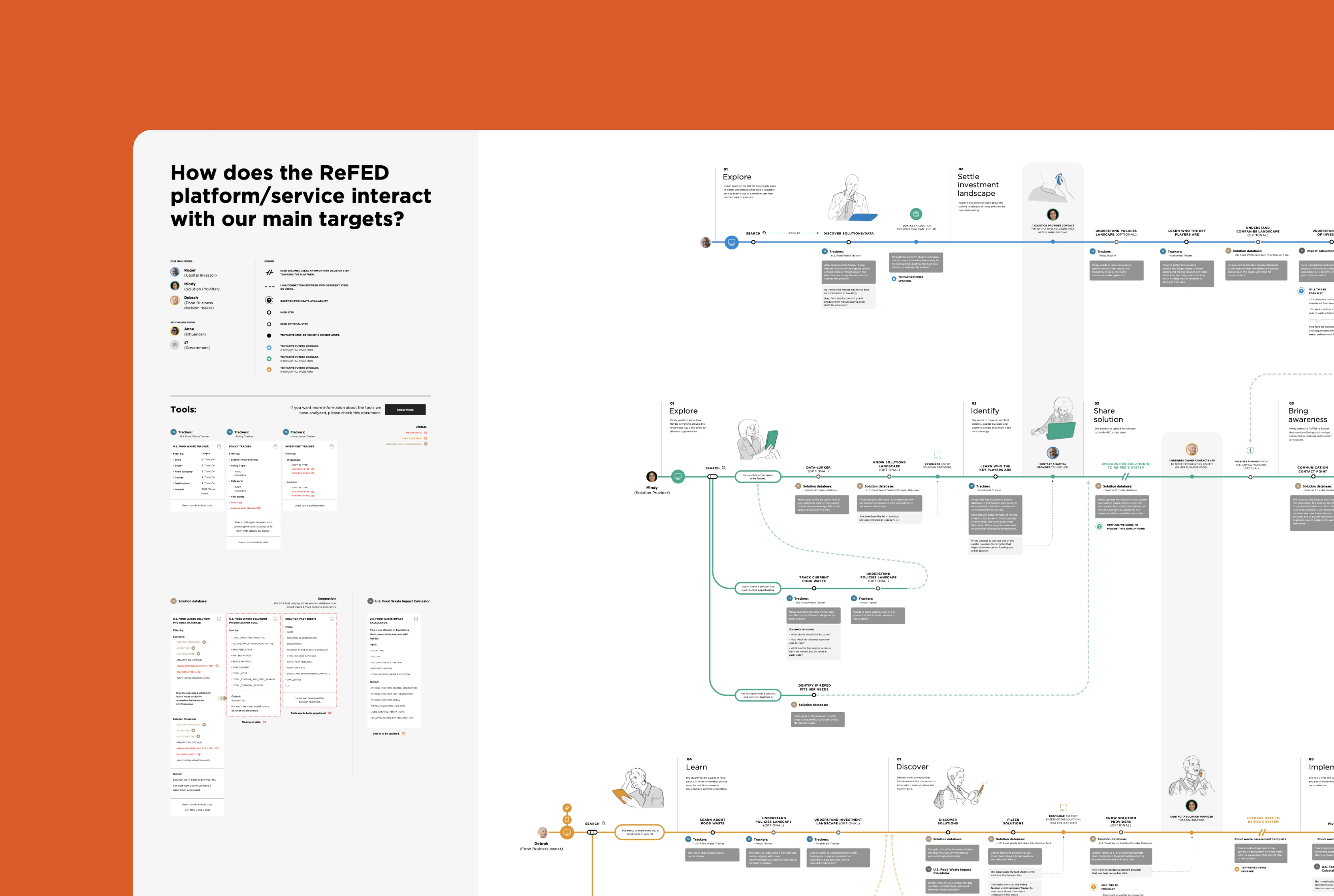 The platform includes the Food Waste Monitor, Solutions Database, Solution Provider Directory, Impact Calculator, Capital Tracker, and Policy Finder, all linked through the same information ecosystem.